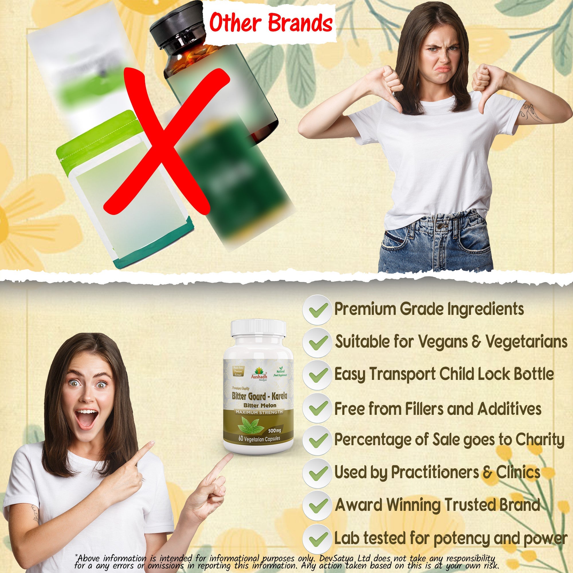 **Avantages** : Ces capsules offrent une approche simple de la nutrition holistique. À chaque dose, vous puisez dans un savoir traditionnel ancestral qui favorise une santé naturelle. Dites adieu à l'amertume du karela cru et profitez de tous ses bienfaits dans un format facile à avaler.
