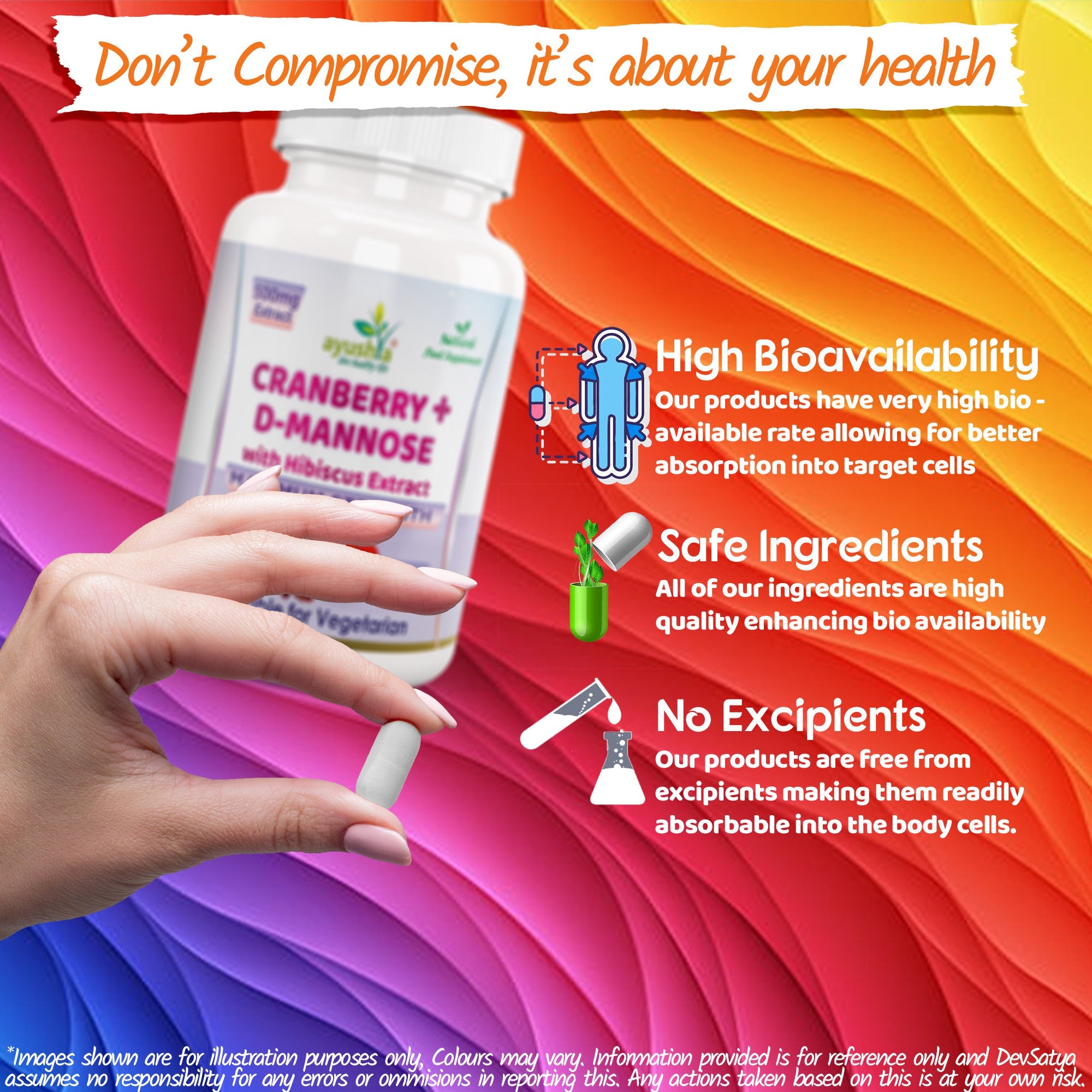 D-mannose de canneberge avec capsules d'extrait d'hibiscus UTI Soutien de la vessie Cystite