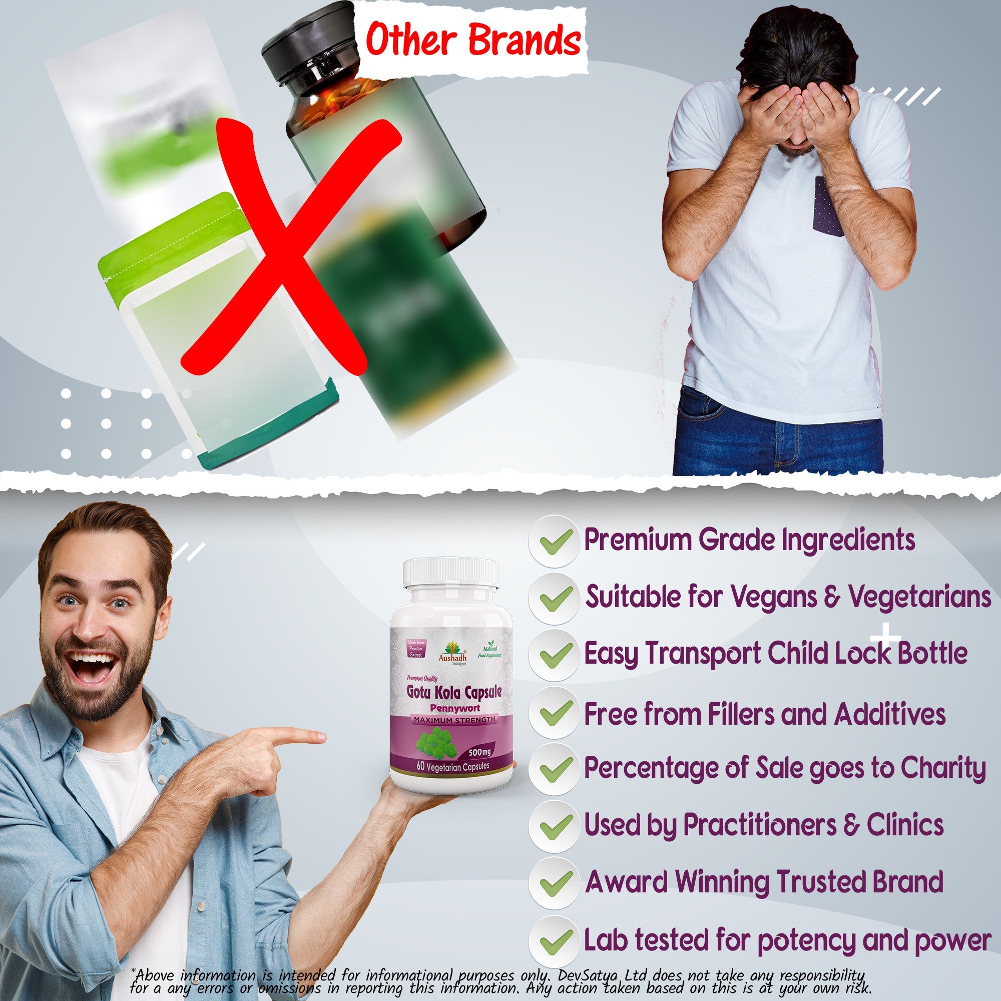 Aushadh Gotukola Capsules (Centella) Memory & Skin Support - Vegan, Gluten Free, Non-GMO, 60 Capsules
