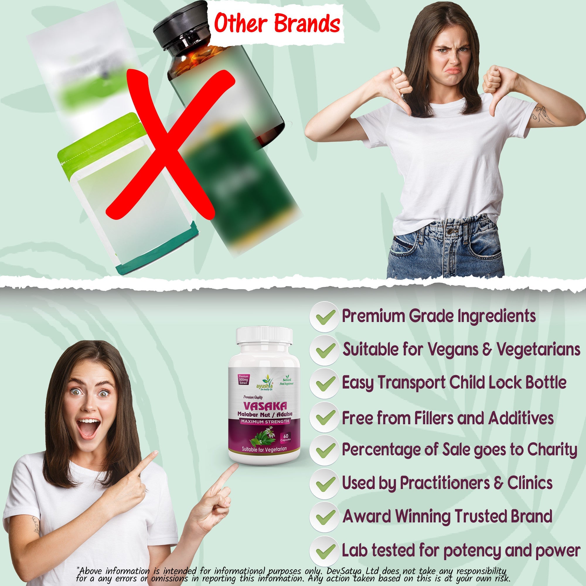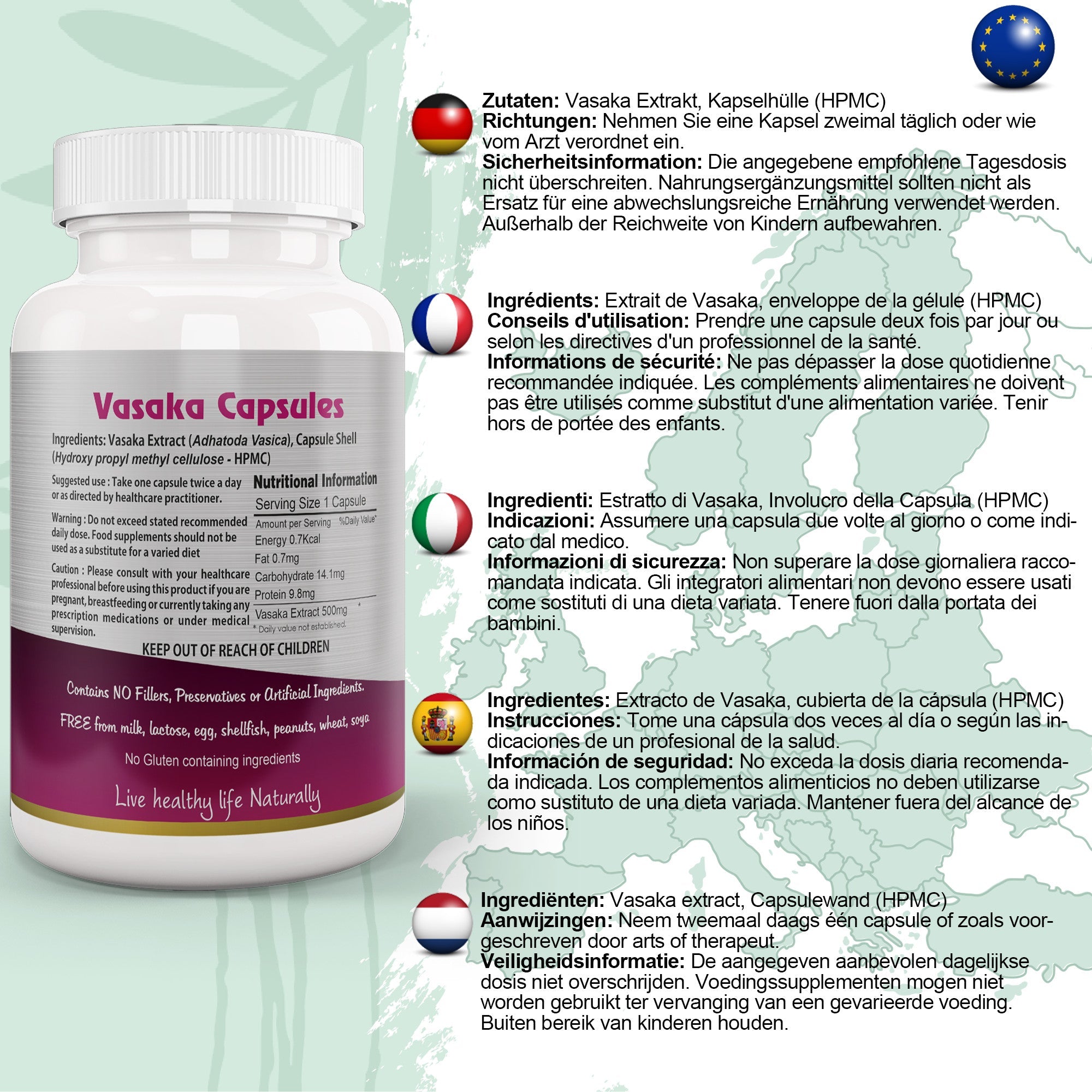 La plante possède de multiples propriétés curatives et constitue un remède ultime à de nombreuses anomalies de santé telles que les troubles respiratoires, la toux et le rhume, la congestion nasale, les maux de gorge, l'asthme, la bronchite, d'autres infections des voies respiratoires supérieures, les troubles de la coagulation, etc. Expectorant naturel, Vasaka possède une riche concentration de composants bioactifs comme la vasicine, la lutéoline, le carotène, le Vasakin, d'autres alcaloïdes de quinazoline et des huiles essentielles. Les feuilles sont abondantes en constituants phytochimiques comme les tanins, les saponines, les alcaloïdes, les flavonoïdes et les composés phénoliques. Dotée de puissantes propriétés antitussives, bronchodilatatrices, antimicrobiennes, anti-inflammatoires, antispasmodiques, etc., la plante est utile dans de nombreuses indications thérapeutiques comme les infections des voies respiratoires supérieures, la tuberculose, les problèmes cardiaques, la constipation, les saignements de nez, la dengue, etc.